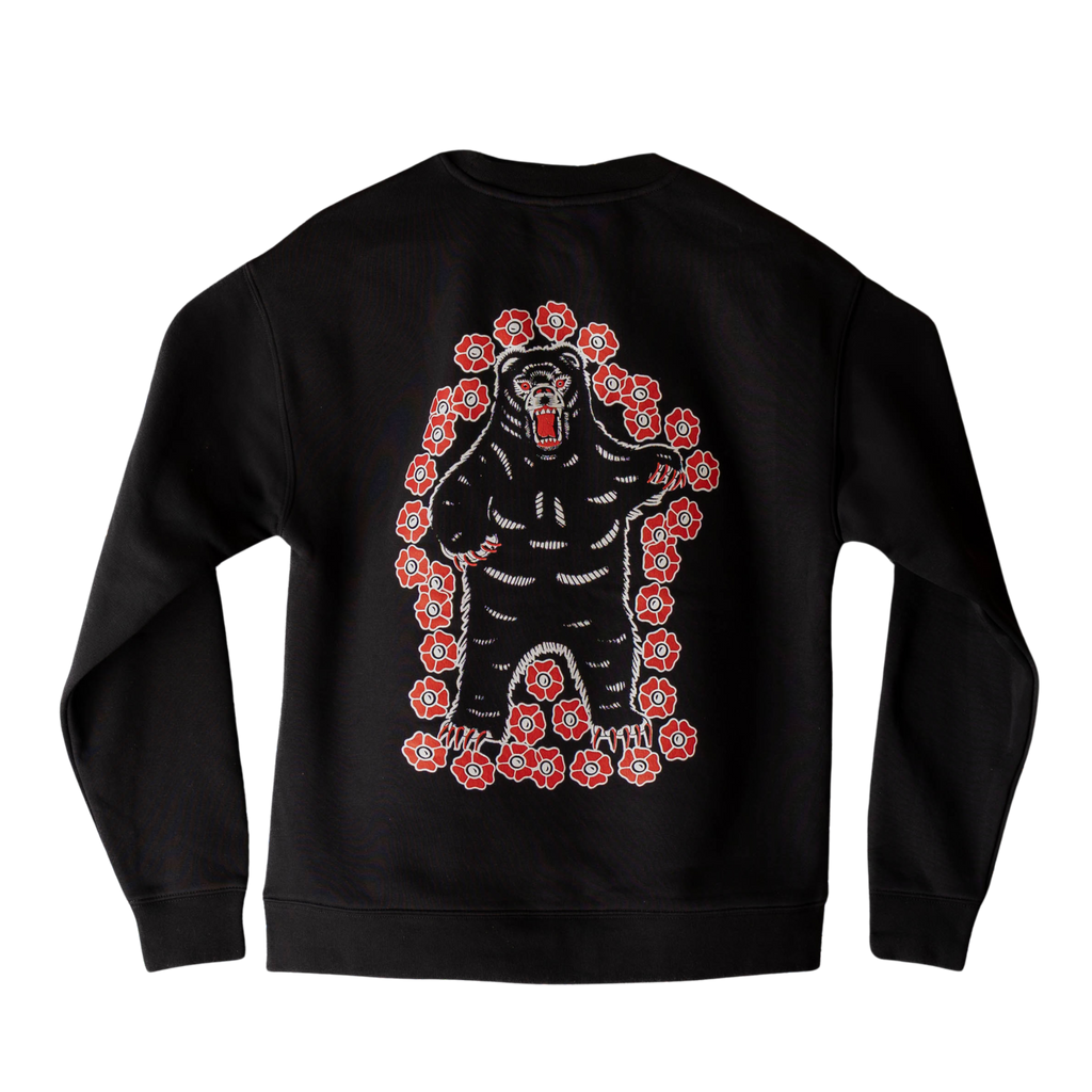 The oh-so-popular Bear Hug Crewneck Sweatshirt is back in black with a two-color, large Bear Hug illustration. Original art by awesome Winnipeg artist, Landen Stachiw.